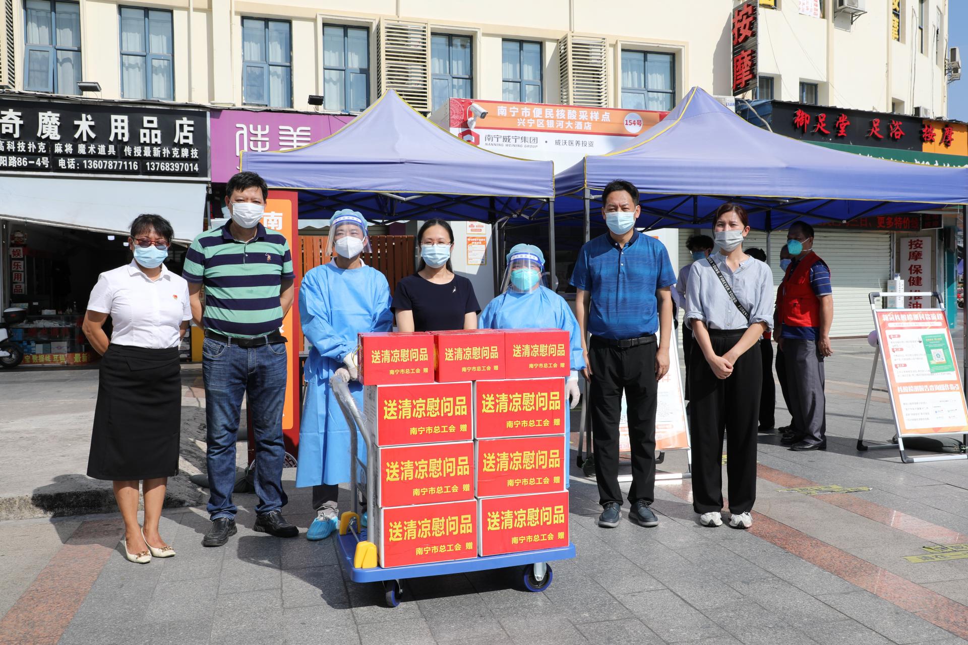 8月15日下午,南寧市總工會副主席馮曉華帶領慰問組到威沃醫養公司便民核酸采樣點開展“炎炎夏日送清涼”慰問活動,為在高溫天氣下堅守崗位的便民核酸采樣點工作人員送去一份夏日的清涼。集團黨委副書記、工會主席馬超毅參加慰問活動。慰問中,馮曉華詳細了解便民核酸采樣點工作、人員配備、工作時長和輪崗等相關情況,向奮戰在高溫酷暑下的一線工作...