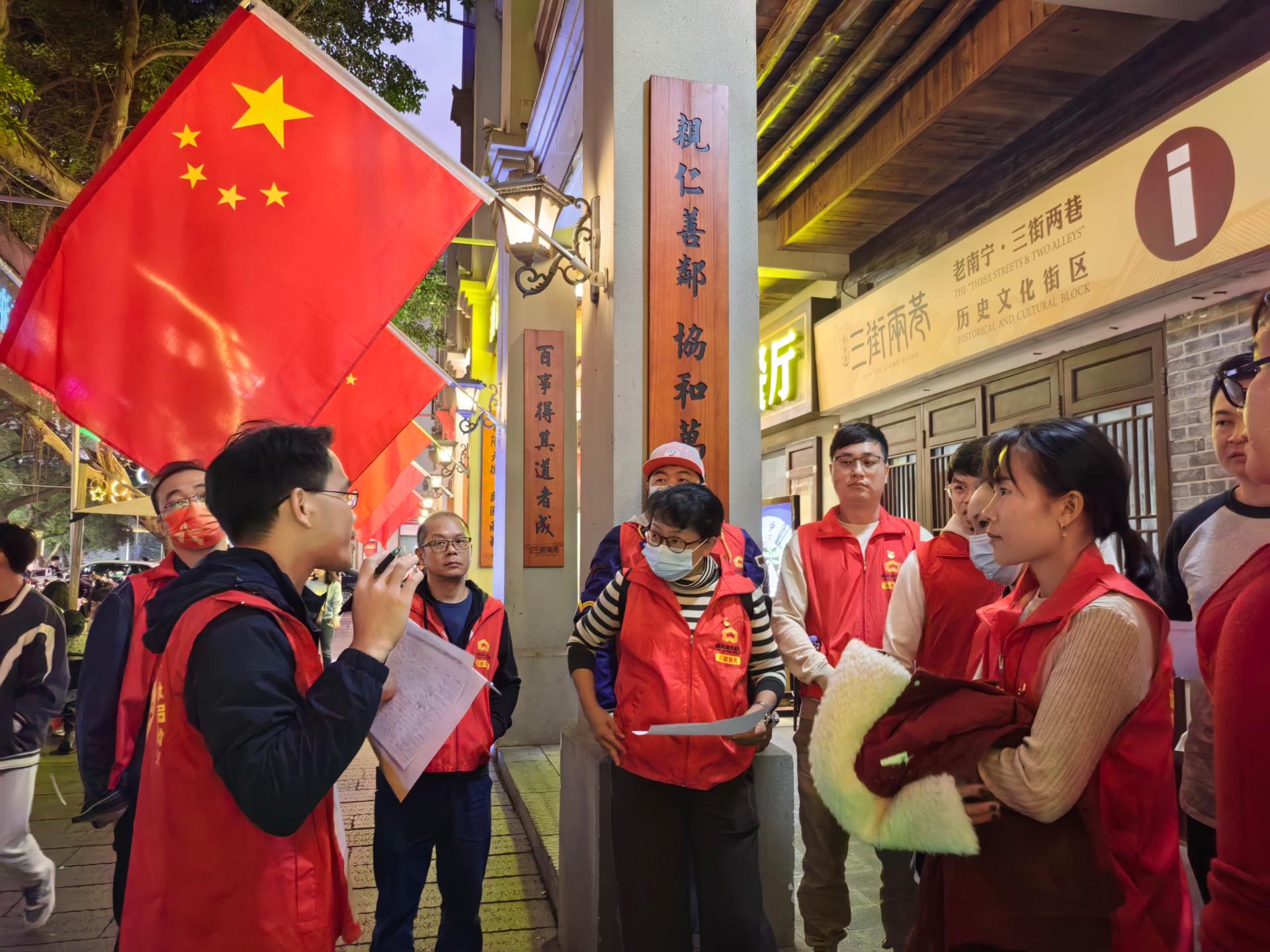 2023年12月31日跨年夜,南寧全城沸騰,邕州古城·三街兩巷舉辦的“古城新禮 邕派生活”迎新活動更是人潮涌動。為更好發(fā)揮志愿服務在保障各級重大活動中的重要作用,12月31日至1月1日凌晨,威邕城市運營集團機關聯(lián)合黨支部、銀河公司聯(lián)合黨支部組織黨員志愿者在邕州古城·三街兩巷集體跨年,用“威邕紅”扮靚“志愿紅”。當天晚上,志愿者們在邕州古城·三街兩巷的各個客流高度密集區(qū)域開展文明秩序維...