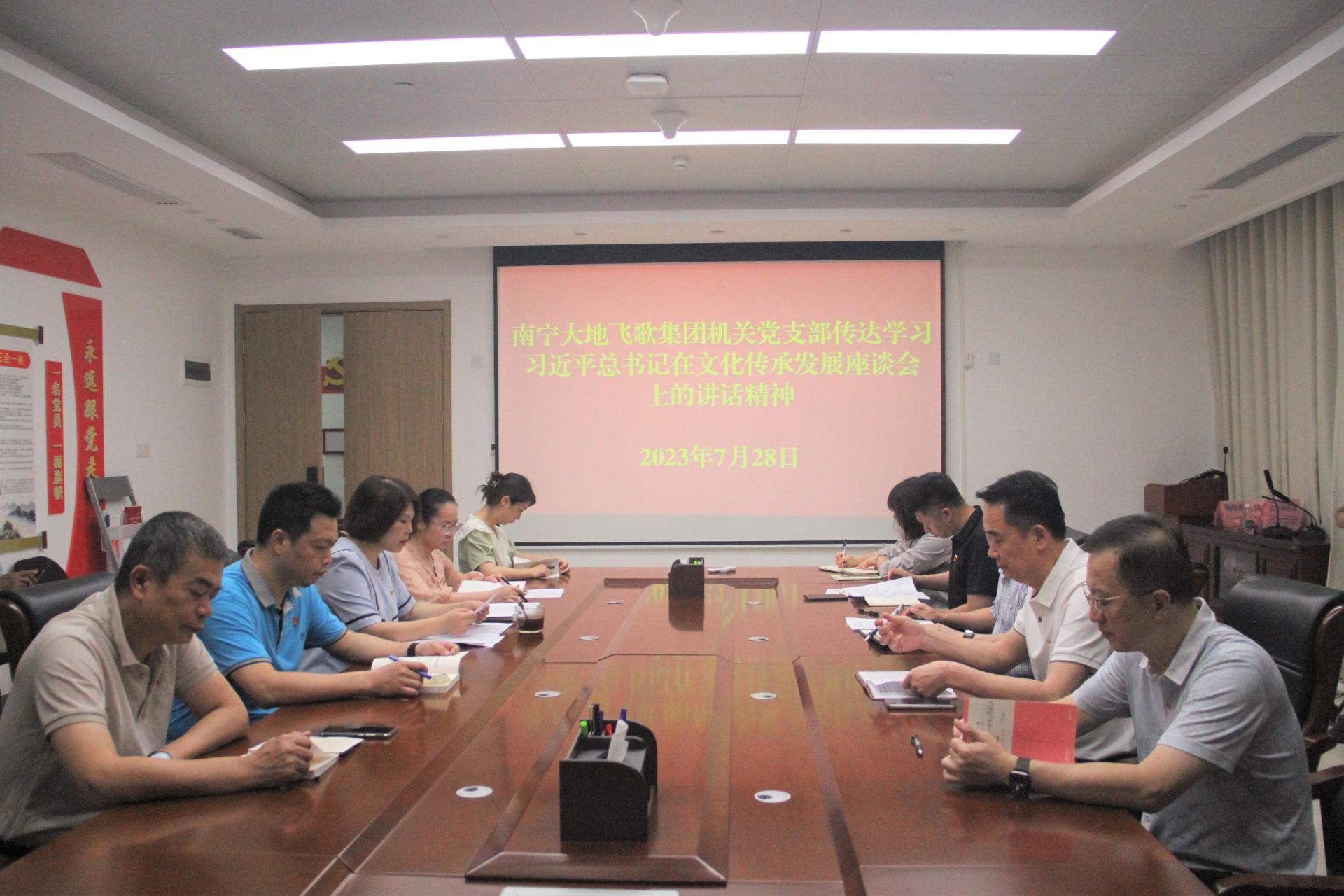 為深入學習貫徹黨的二十大精神,扎實推進基層黨建“五基三化”提升年行動深入開展,2023年7月28日,南寧大地飛歌集團機關黨支部召開黨員大會,會議由機關黨支部書記楊青林主持。學講話 揚精神 悟思想。會上,楊青林帶領全體黨員學習習近平總書記在文化傳承發(fā)展座談會上的講話精神。通過學習黨員們一致認為,習近平總書記在文化傳承發(fā)展座談會上的重要講話,著眼于強國建設、民族復興,立足于賡續(xù)中華文脈、建設現(xiàn)代文...
