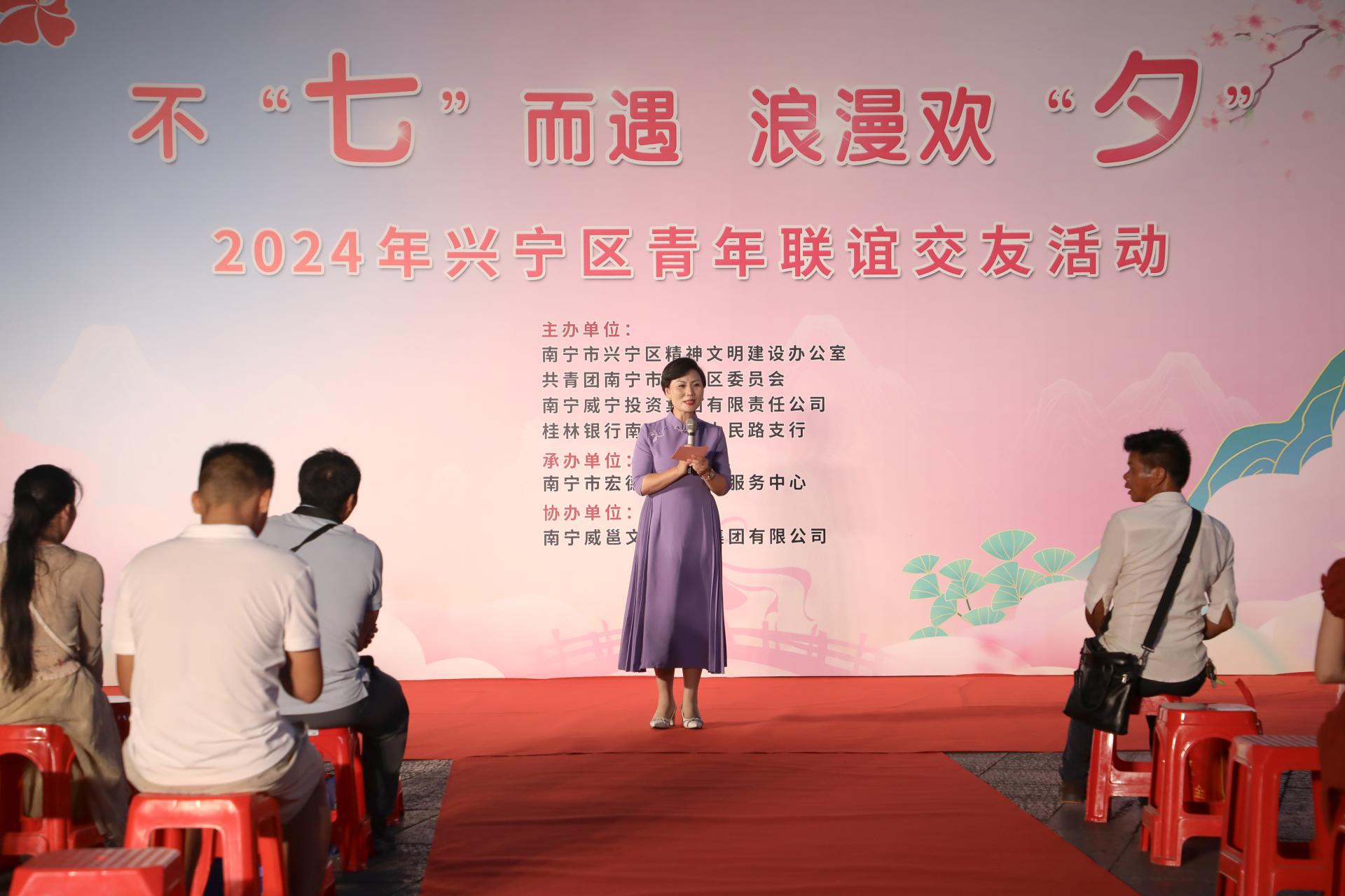 為傳承中華優秀傳統文化,深化傳統節日文化內涵,大力弘揚文明婚戀新風尚,幫助新時代單身青年拓展交際圈搭建交流平臺,七夕當日,由興寧區文明辦、共青團興寧區委、南寧威寧集團主辦,威邕文旅集團協辦的“不‘七’而遇浪漫歡‘夕’”單身青年交友聯誼新時代文明實踐活動在邕州古城·三街兩巷舉行。本次活動設立了婚俗文化展、非遺手工制作、拍照打卡、嘉賓互動等內容,打破了傳統交友形式,以“民族民俗+心靈互動+情歌連唱+革...