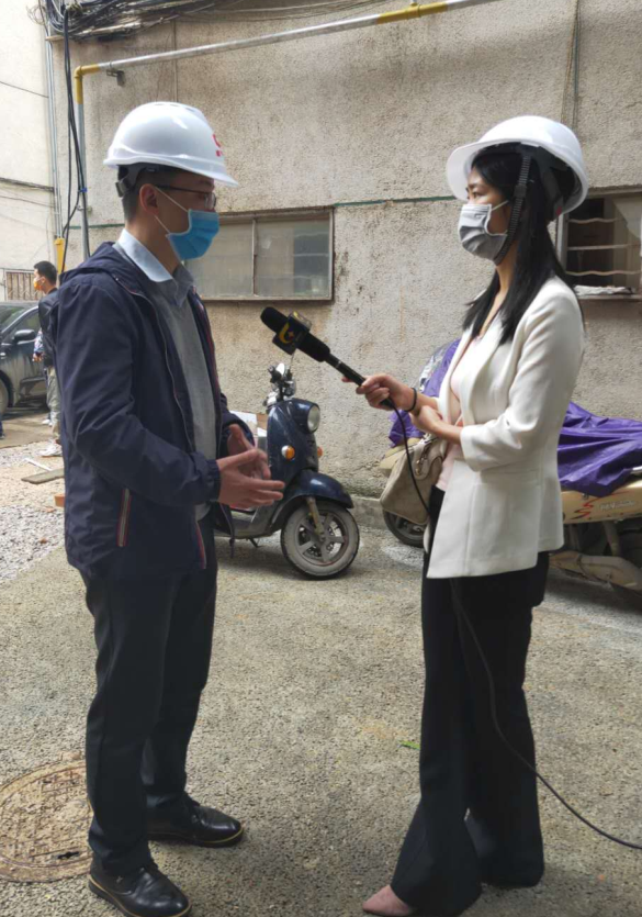廣西電視臺記者對老舊小區(qū)改造工作進行采訪
