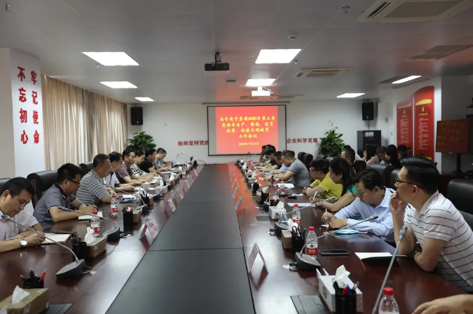 2020 年7月17日,南寧威寧集團召開2020年第三季度安全生產、維穩、脫貧攻堅、創建文明城市工作會議,傳達了習近平總書記、李克強總理近期對防汛救災工作作出的重要指示,對集團第二季度安全生產、維穩、精準脫貧、創建文明城市工作進行總結,并對第三季度各項工作進行全面部署。集團副總經理滕振旗主持會議,集團黨委副書記馬超毅、副總經理黎鎮宇作相關發言。