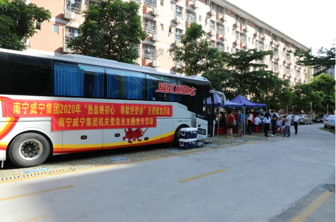 2020年7月7日,南寧威寧集團黨委聯合市中心血站在威寧大廈一樓開展2020年“熱血映初心 奉獻擔使命”無償獻血活動。當日,來自集團本部和各監管單位的60多名黨員、職工志愿者踴躍參加獻血活動,其中37名志愿者成功獻血,獻血總量達10100毫升,用實際行動助力疫情防控。