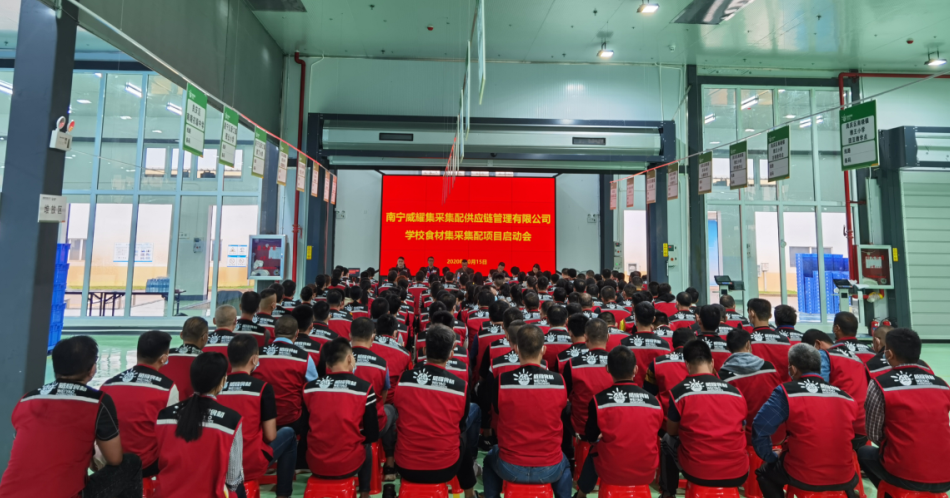 2020年10月15日,威耀供應鏈公司學校食材集采集配項目啟動會在五象配送基地召開。南寧威寧集團副總經理滕振旗出席會議并講話,威耀供應鏈公司領導班子、全體員工及配送基地業務外包人員共170人參加會議。