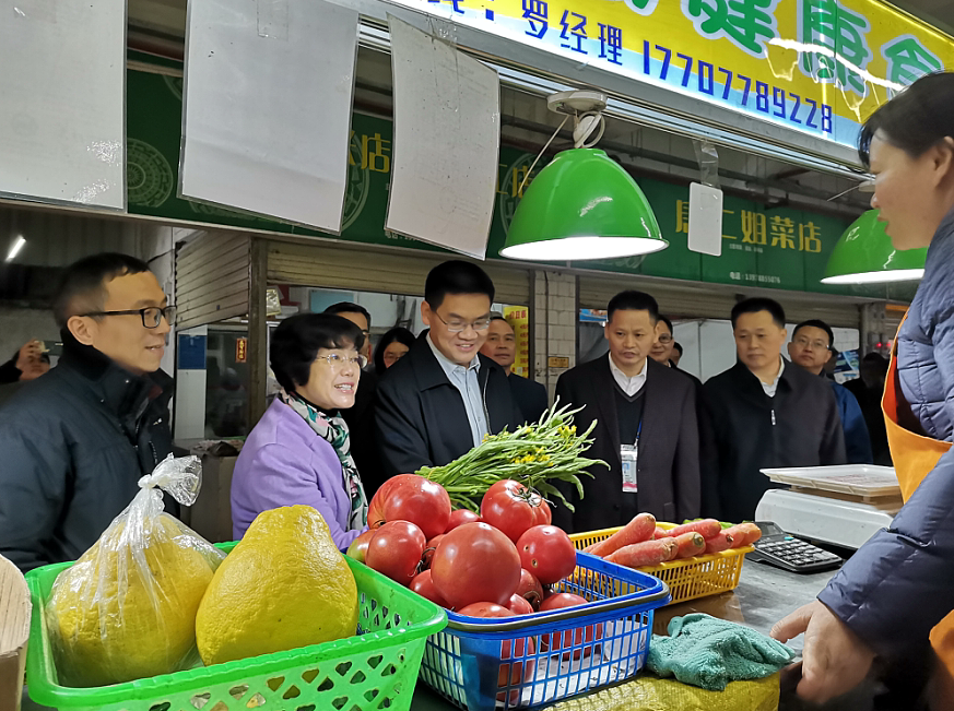 春節將至,為保障邕城市民的“菜籃子”安全,2020年1月20日,自治區人民政府副主席楊晉柏、南寧市副市長伍娟、自治區商務廳、南寧市商務局相關負責人組成的調研組,前往飛鳳市場開展春節前商品供應及食品安全情況調研。